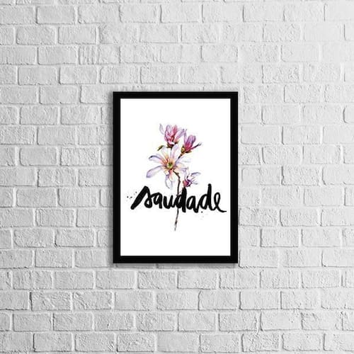 Quadro palavra saudade 24x18cm Moldura: madeira preta Informações do produto tire todas as suas dúvidas no descritivo abaixo: decoração para quarto, sala, cozinha, escritório, área gourmet e muito mais. Chega de paredes vazias medidas - cada peça tem 24x18cm a5 . Material do papel - papel fotográfico brilhante de altíssima resolução acabamento - todos os quadros são acompanhados de uma película de acetato para proteção da imagem. - moldura em madeira maciça na cor branca e pendurador móvel que pode ser retirado facilmente caso deseje fixar com fita dupla face. - os quadros são embalados de forma segura com plástico bolha com camada dupla de acordo com o tamanho dos quadros. - de 3 meses prazo de envio pedimos 24 horas úteis no máximo para enviar seu pedido após o envio, segue os prazos normais dos correios, cerca de 7 exceto para norte e nordeste, que pode ser de até 14 . Em diversas cidades, este prazo normalmente é reduzido, mas depende do prazo dos correios. Meu quadro chegou. Como posso fixá-lo Você precisa apenas de um martelo e um prego, pois os quadros já vão acompanhados de penduradores. Esta é a forma mais indicada. Caso prefira, você pode utilizar uma fita dupla face neste caso, sugerimos de alta qualidade para evitar que descole e seu quadro caia . Como posso limpar meu quadro A limpeza é feita como um móvel comum da sua casa. Apenas um pano seco ou espanador são suficientes para tal Marca: Não Informado