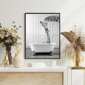 Quadro para banheiro - girafas na banheira 33x24cm Moldura: madeira preta Informações do produto tire todas as suas dúvidas no descritivo abaixo: decoração para quarto, sala, cozinha, escritório, área gourmet e muito mais. Chega de paredes vazias medidas - cada peça tem 33x24cm a4 . Material do papel - papel fotográfico brilhante de altíssima resolução acabamento - todos os quadros são acompanhados de uma película de acetato para proteção da imagem. - os quadros são embalados de forma segura com plástico bolha com camada dupla de acordo com o tamanho dos quadros. - de 3 meses. Meu quadro chegou. Como posso fixá-lo Você precisa apenas de um martelo e um prego, pois os quadros já vão acompanhados de penduradores. Esta é a forma mais indicada. Caso prefira, você pode utilizar uma fita dupla face neste caso, sugerimos de alta qualidade para evitar que descole e seu quadro caia . Como posso limpar meu quadro A limpeza é feita como um móvel comum da sua casa. Apenas um pano seco ou espanador são suficientes para tal Marca: Não Informado