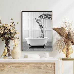 Quadro para banheiro - girafas na banheira 45x34cm Moldura: madeira branca Informações do produto tire todas as suas dúvidas no descritivo abaixo: decoração para quarto, sala, cozinha, escritório, área gourmet e muito mais. Chega de paredes vazias. Medidas - cada peça tem 45x34cm a3 . Material do papel - papel fotográfico brilhante de altíssima resolução acabamento - todos os quadros são acompanhados de uma película de acetato para proteção da imagem. - os quadros são embalados de forma segura com plástico bolha com camada dupla de acordo com o tamanho dos quadros. - de 3 meses. Meu quadro chegou. Como posso fixá-lo Você precisa apenas de um martelo e um prego, pois os quadros já vão acompanhados de penduradores. Esta é a forma mais indicada. Caso prefira, você pode utilizar uma fita dupla face neste caso, sugerimos de alta qualidade para evitar que descole e seu quadro caia . Como posso limpar meu quadro A limpeza é feita como um móvel comum da sua casa. Apenas um pano seco ou espanador são suficientes para tal Marca: Não Informado Ean: 7898172522115
