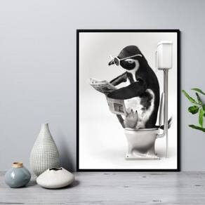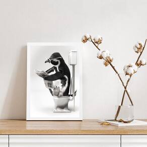 Quadro para banheiro pinguim no vaso 45x34cm Moldura: madeira branca Informações do produto tire todas as suas dúvidas no descritivo abaixo: decoração para quarto, sala, cozinha, escritório, área gourmet e muito mais. Chega de paredes vazias. Medidas - cada peça tem 45x34cm a3 . Material do papel - papel fotográfico brilhante de altíssima resolução acabamento - todos os quadros são acompanhados de uma película de acetato para proteção da imagem. - os quadros são embalados de forma segura com plástico bolha com camada dupla de acordo com o tamanho dos quadros. - de 3 meses. Meu quadro chegou. Como posso fixá-lo Você precisa apenas de um martelo e um prego, pois os quadros já vão acompanhados de penduradores. Esta é a forma mais indicada. Caso prefira, você pode utilizar uma fita dupla face neste caso, sugerimos de alta qualidade para evitar que descole e seu quadro caia . Como posso limpar meu quadro A limpeza é feita como um móvel comum da sua casa. Apenas um pano seco ou espanador são suficientes para tal Marca: Não Informado Ean: 7894193078723