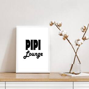 Quadro para banheiro - pipi lounge 33x24cm - com vidro Moldura: madeira branca Informações do produto tire todas as suas dúvidas no descritivo abaixo: decoração para quarto, sala, cozinha, escritório, área gourmet e muito mais. Chega de paredes vazias medidas - cada peça tem 33x24cm a4 . Material do papel - papel fotográfico brilhante de altíssima resolução acabamento - todos os quadros são acompanhados de vidro para proteção da imagem. - moldura em madeira maciça na cor preta ou branca conforme produto escolhido e pendurador . - os quadros são embalados de forma segura com plástico bolha com camada dupla de acordo com o tamanho dos quadros. - de 3 meses. Meu quadro chegou. Como posso fixá-lo Você precisa apenas de um martelo e um prego, pois os quadros já vão acompanhados de penduradores. Esta é a forma mais indicada. Como posso limpar meu quadro A limpeza é feita como um móvel comum da sua casa. Apenas um pano seco ou espanador são suficientes para tal Ean: 7896529254573