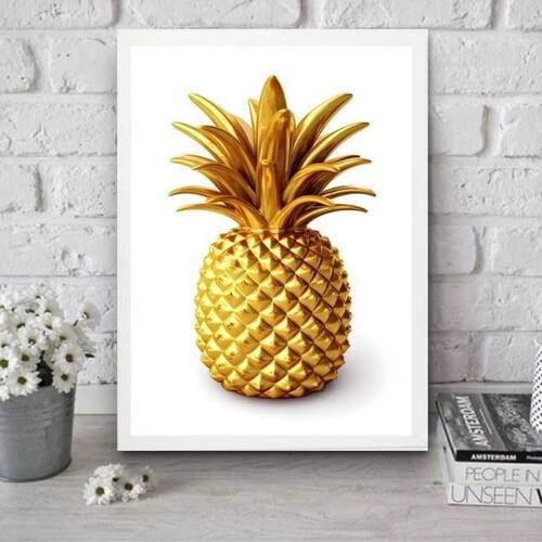 Quadro para cozinha abacaxi dourado 33x24cm Cor: moldura branca Informações do produto tire todas as suas dúvidas no descritivo abaixo: decoração para quarto, sala, cozinha, escritório, área gourmet e muito mais. Chega de paredes vazias medidas - cada peça tem 33x24cm a4 . Material do papel - papel fotográfico brilhante de altíssima resolução acabamento - todos os quadros são acompanhados de uma película de acetato para proteção da imagem. - os quadros são embalados de forma segura com plástico bolha com camada dupla de acordo com o tamanho dos quadros. Garantia - garantia de 3 meses. Meu quadro chegou. Como posso fixá-lo Você precisa apenas de um martelo e um prego, pois os quadros já vão acompanhados de penduradores. Esta é a forma mais indicada. Caso prefira, você pode utilizar uma fita dupla face neste caso, sugerimos de alta qualidade para evitar que descole e seu quadro caia . Como posso limpar meu quadro A limpeza é feita como um móvel comum da sua casa. Apenas um pano seco ou espanador são suficientes para tal