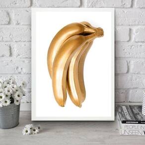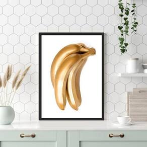 Quadro para cozinha banana dourada 45x34cm - com vidro Cor: moldura preta Informações do produto tire todas as suas dúvidas no descritivo abaixo: decoração para quarto, sala, cozinha, escritório, área gourmet e muito mais. Chega de paredes vazias medidas - cada peça tem 45x34cm a3 . Material do papel - papel fotográfico brilhante de altíssima resolução acabamento - todos os quadros são acompanhados de vidro para proteção da imagem. - moldura em madeira maciça na cor preta ou branca conforme produto escolhido e pendurador . - os quadros são embalados de forma segura com plástico bolha com camada dupla de acordo com o tamanho dos quadros. Garantia - garantia de 3 meses. Meu quadro chegou. Como posso fixá-lo Você precisa apenas de um martelo e um prego, pois os quadros já vão acompanhados de penduradores. Esta é a forma mais indicada. Como posso limpar meu quadro A limpeza é feita como um móvel comum da sua casa. Apenas um pano seco ou espanador são suficientes para tal