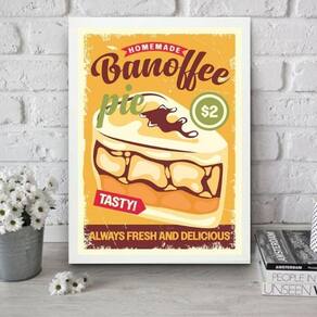 Quadro para cozinha bolo banoffee 33x24cm Cor: moldura preta Informações do produto tire todas as suas dúvidas no descritivo abaixo: decoração para quarto, sala, cozinha, escritório, área gourmet e muito mais. Chega de paredes vazias medidas - cada peça tem 33x24cm a4 . Material do papel - papel fotográfico brilhante de altíssima resolução acabamento - todos os quadros são acompanhados de uma película de acetato para proteção da imagem. - os quadros são embalados de forma segura com plástico bolha com camada dupla de acordo com o tamanho dos quadros. Garantia - garantia de 3 meses. Meu quadro chegou. Como posso fixá-lo Você precisa apenas de um martelo e um prego, pois os quadros já vão acompanhados de penduradores. Esta é a forma mais indicada. Caso prefira, você pode utilizar uma fita dupla face neste caso, sugerimos de alta qualidade para evitar que descole e seu quadro caia . Como posso limpar meu quadro A limpeza é feita como um móvel comum da sua casa. Apenas um pano seco ou espanador são suficientes para tal