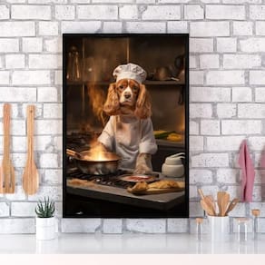 Quadro para cozinha cão cocker spaniel's 45x34cm - com vidro Moldura: madeira branca Informações do produto tire todas as suas dúvidas no descritivo abaixo: decoração para quarto, sala, cozinha, escritório, área gourmet e muito mais. Chega de paredes vazias medidas - cada peça tem 45x34cm a3 . Material do papel - papel fotográfico brilhante de altíssima resolução acabamento - todos os quadros são acompanhados de vidro para proteção da imagem. - moldura em madeira maciça na cor preta ou branca conforme produto escolhido e pendurador . - os quadros são embalados de forma segura com plástico bolha com camada dupla de acordo com o tamanho dos quadros. Garantia - garantia de 3 meses. Meu quadro chegou. Como posso fixá-lo Você precisa apenas de um martelo e um prego, pois os quadros já vão acompanhados de penduradores. Esta é a forma mais indicada. Como posso limpar meu quadro A limpeza é feita como um móvel comum da sua casa. Apenas um pano seco ou espanador são suficientes para tal Ean: 7890292235685