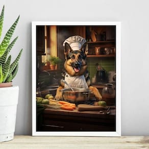 Quadro para cozinha cão raça pastor alemão 45x34cm Moldura: madeira preta Informações do produto tire todas as suas dúvidas no descritivo abaixo: decoração para quarto, sala, cozinha, escritório, área gourmet e muito mais. Chega de paredes vazias. Medidas - cada peça tem 45x34cm a3 . Material do papel - papel fotográfico brilhante de altíssima resolução acabamento - todos os quadros são acompanhados de uma película de acetato para proteção da imagem. - os quadros são embalados de forma segura com plástico bolha com camada dupla de acordo com o tamanho dos quadros. Garantia - garantia de 3 meses. Meu quadro chegou. Como posso fixá-lo Você precisa apenas de um martelo e um prego, pois os quadros já vão acompanhados de penduradores. Esta é a forma mais indicada. Caso prefira, você pode utilizar uma fita dupla face neste caso, sugerimos de alta qualidade para evitar que descole e seu quadro caia . Como posso limpar meu quadro A limpeza é feita como um móvel comum da sua casa. Apenas um pano seco ou espanador são suficientes para tal