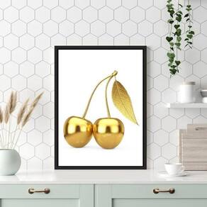 Quadro para cozinha cereja dourada 45x34cm Cor: moldura branca Informações do produto tire todas as suas dúvidas no descritivo abaixo: decoração para quarto, sala, cozinha, escritório, área gourmet e muito mais. Chega de paredes vazias. Medidas - cada peça tem 45x34cm a3 . Material do papel - papel fotográfico brilhante de altíssima resolução acabamento - todos os quadros são acompanhados de uma película de acetato para proteção da imagem. - os quadros são embalados de forma segura com plástico bolha com camada dupla de acordo com o tamanho dos quadros. Garantia - garantia de 3 meses. Meu quadro chegou. Como posso fixá-lo Você precisa apenas de um martelo e um prego, pois os quadros já vão acompanhados de penduradores. Esta é a forma mais indicada. Caso prefira, você pode utilizar uma fita dupla face neste caso, sugerimos de alta qualidade para evitar que descole e seu quadro caia . Como posso limpar meu quadro A limpeza é feita como um móvel comum da sua casa. Apenas um pano seco ou espanador são suficientes para tal