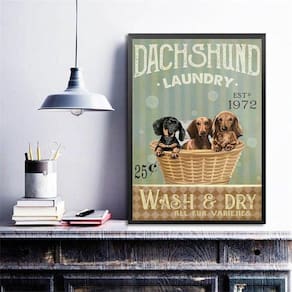 Quadro para lavanderia dachshund 33x24cm - com vidro Moldura: madeira preta Informações do produto tire todas as suas dúvidas no descritivo abaixo: decoração para quarto, sala, cozinha, escritório, área gourmet e muito mais. Chega de paredes vazias medidas - cada peça tem 33x24cm a4 . Material do papel - papel fotográfico brilhante de altíssima resolução acabamento - todos os quadros são acompanhados de vidro para proteção da imagem. - moldura em madeira maciça na cor preta ou branca conforme produto escolhido e pendurador . - os quadros são embalados de forma segura com plástico bolha com camada dupla de acordo com o tamanho dos quadros. Garantia - garantia de 3 meses. Meu quadro chegou. Como posso fixá-lo Você precisa apenas de um martelo e um prego, pois os quadros já vão acompanhados de penduradores. Esta é a forma mais indicada. Como posso limpar meu quadro A limpeza é feita como um móvel comum da sua casa. Apenas um pano seco ou espanador são suficientes para tal