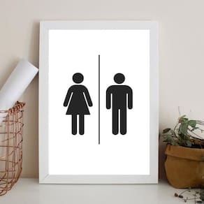 Quadro para sinalizar banheiro unissex 24x18cm Moldura: madeira branca Informações do produto tire todas as suas dúvidas no descritivo abaixo: decoração para quarto, sala, cozinha, escritório, área gourmet e muito mais. Chega de paredes vazias medidas - cada peça tem 24x18cm a5 . Material do papel - papel fotográfico brilhante de altíssima resolução acabamento - todos os quadros são acompanhados de uma película de acetato para proteção da imagem. - os quadros são embalados de forma segura com plástico bolha com camada dupla de acordo com o tamanho dos quadros. Garantia - garantia de 3 meses. Meu quadro chegou. Como posso fixá-lo Você precisa apenas de um martelo e um prego, pois os quadros já vão acompanhados de penduradores. Esta é a forma mais indicada. Caso prefira, você pode utilizar uma fita dupla face neste caso, sugerimos de alta qualidade para evitar que descole e seu quadro caia . Como posso limpar meu quadro A limpeza é feita como um móvel comum da sua casa. Apenas um pano seco ou espanador são suficientes para tal