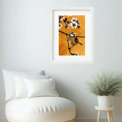 Quadro pássaro flor de cerejeira- 60x48cm Cor: moldura branca Informações do produto tire todas as suas dúvidas no descritivo abaixo: decoração para quarto, sala, cozinha, escritório, área gourmet e muito mais. Chega de paredes vazias medidas - cada peça tem 60x48cm . Material do papel - papel fotográfico brilhante de altíssima resolução acabamento - todos os quadros são acompanhados de vidro para proteção da imagem. - moldura em madeira maciça na cor preta ou branca conforme produto escolhido e pendurador. - paspatur branco com 7cm de largura - os quadros são embalados de forma segura com plástico bolha com camada dupla de acordo com o tamanho dos quadros. - de 3 meses. Meu quadro chegou. Como posso fixá-lo Você precisa apenas de um martelo e um prego, pois os quadros já vão acompanhados de penduradores. Esta é a forma mais indicada. Como posso limpar meu quadro A limpeza é feita como um móvel comum da sua casa. Apenas um pano seco ou espanador são suficientes para tal
