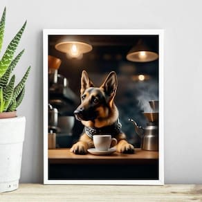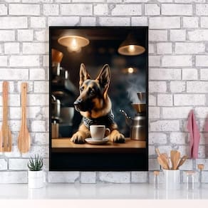 Quadro Pastor Alemão Tomando Café 24X18Cm