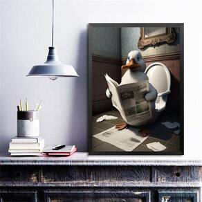 Quadro pato no banheiro lendo jornal 33x24cm Moldura: madeira branca Informações do produto tire todas as suas dúvidas no descritivo abaixo: decoração para quarto, sala, cozinha, escritório, área gourmet e muito mais. Chega de paredes vazias medidas - cada peça tem 33x24cm a4 . Material do papel - papel fotográfico brilhante de altíssima resolução acabamento - todos os quadros são acompanhados de uma película de acetato para proteção da imagem. - os quadros são embalados de forma segura com plástico bolha com camada dupla de acordo com o tamanho dos quadros. Garantia - garantia de 3 meses. Meu quadro chegou. Como posso fixá-lo Você precisa apenas de um martelo e um prego, pois os quadros já vão acompanhados de penduradores. Esta é a forma mais indicada. Caso prefira, você pode utilizar uma fita dupla face neste caso, sugerimos de alta qualidade para evitar que descole e seu quadro caia . Como posso limpar meu quadro A limpeza é feita como um móvel comum da sua casa. Apenas um pano seco ou espanador são suficientes para tal