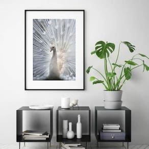 Quadro pavão branco - 60x48cm Moldura: madeira preta Informações do produto tire todas as suas dúvidas no descritivo abaixo: decoração para quarto, sala, cozinha, escritório, área gourmet e muito mais. Chega de paredes vazias medidas - cada peça tem 60x48cm . Material do papel - papel fotográfico brilhante de altíssima resolução acabamento - todos os quadros são acompanhados de vidro para proteção da imagem. - moldura em madeira maciça na cor preta ou branca conforme produto escolhido e pendurador. - paspatur branco com 7cm de largura - os quadros são embalados de forma segura com plástico bolha com camada dupla de acordo com o tamanho dos quadros. - de 3 meses. Meu quadro chegou. Como posso fixá-lo Você precisa apenas de um martelo e um prego, pois os quadros já vão acompanhados de penduradores. Esta é a forma mais indicada. Como posso limpar meu quadro A limpeza é feita como um móvel comum da sua casa. Apenas um pano seco ou espanador são suficientes para tal Marca: Não Informado