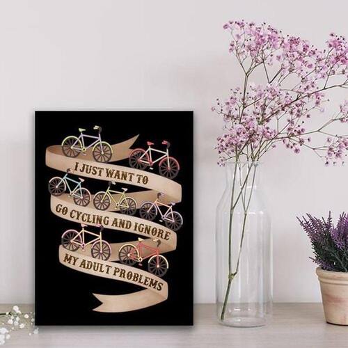 Quadro pedalar para esquecer os problemas 24x18cm - com vidro Moldura: madeira preta Informações do produtoDecoração para quarto, sala, cozinha, escritório, área gourmet e muito mais. Chega de paredes vazias Medidas - cada peça tem 24x18cm a5 . Material do papel - papel fotográfico brilhante de altíssima resolução Acabamento - todos os quadros são acompanhados de vidro para proteção da imagem. - moldura em madeira maciça e pendurador. - os quadros são embalados de forma segura com plástico bolha com camada dupla de acordo com o tamanho dos quadros. Garantia - garantia de 3 meses. Meu quadro chegou. Como posso fixá-lo Você precisa apenas de um martelo e um prego, pois os quadros já vão acompanhados de penduradores. Esta é a forma mais indicada. Como posso limpar meu quadro A limpeza é feita como um móvel comum da sua casa. Apenas um pano seco ou espanador são suficientes para tal