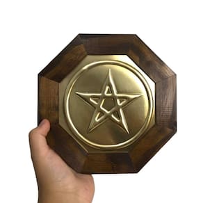 Quadro Pentagrama Madeira Imbuia Oitavado e Metal 18 Cm