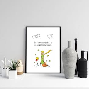 Quadro pequeno príncipe - foi o tempo 33x24cm Cor: moldura preta Informações do produto tire todas as suas dúvidas no descritivo abaixo: decoração para quarto, sala, cozinha, escritório, área gourmet e muito mais. Chega de paredes vazias medidas - cada peça tem 33x24cm a4 . Material do papel - papel fotográfico brilhante de altíssima resolução acabamento - todos os quadros são acompanhados de uma película de acetato para proteção da imagem. - os quadros são embalados de forma segura com plástico bolha com camada dupla de acordo com o tamanho dos quadros. Garantia - garantia de 3 meses. Meu quadro chegou. Como posso fixá-lo Você precisa apenas de um martelo e um prego, pois os quadros já vão acompanhados de penduradores. Esta é a forma mais indicada. Caso prefira, você pode utilizar uma fita dupla face neste caso, sugerimos de alta qualidade para evitar que descole e seu quadro caia . Como posso limpar meu quadro A limpeza é feita como um móvel comum da sua casa. Apenas um pano seco ou espanador são suficientes para tal