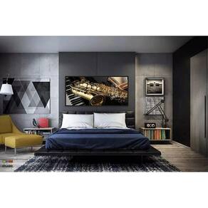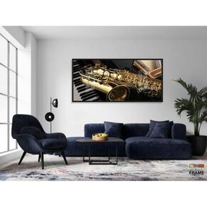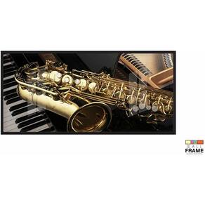 Quadro Piano Teclado E Saxofone Música Decorativo 130x60 Moldura Preta 2x2
