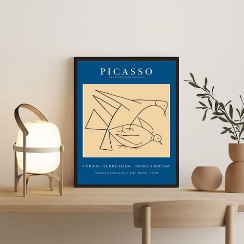 O Quadro Minimalista Picasso Azul Mulher E Pássaro é perfeito para decorar qualquer ambiente da sua casa. Com medidas de 24x18cm A5 , ele se encaixa facilmente em quartos, salas, cozinhas, escritórios, áreas gourmet e muito mais.