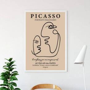 Quadro picasso - everything you imagine is real 33x24cm - com vidro Moldura: madeira preta Informações do produto tire todas as suas dúvidas no descritivo abaixo: decoração para quarto, sala, cozinha, escritório, área gourmet e muito mais. Chega de paredes vazias medidas - cada peça tem 33x24cm a4 . Material do papel - papel fotográfico brilhante de altíssima resolução acabamento - todos os quadros são acompanhados de vidro para proteção da imagem. - moldura em madeira maciça na cor preta ou branca conforme produto escolhido e pendurador . - os quadros são embalados de forma segura com plástico bolha com camada dupla de acordo com o tamanho dos quadros. Garantia - garantia de 3 meses. Meu quadro chegou. Como posso fixá-lo Você precisa apenas de um martelo e um prego, pois os quadros já vão acompanhados de penduradores. Esta é a forma mais indicada. Como posso limpar meu quadro A limpeza é feita como um móvel comum da sua casa. Apenas um pano seco ou espanador são suficientes para tal