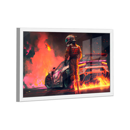 Quadro Piloto Fire -- BR ARTES Moldura Branca e Vidro - Médio 84x54 -