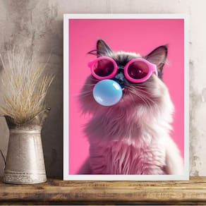 Quadro pink cat bubble gum 24x18cm Cor: moldura preta Informações do produto tire todas as suas dúvidas no descritivo abaixo: decoração para quarto, sala, cozinha, escritório, área gourmet e muito mais. Chega de paredes vazias medidas - cada peça tem 24x18cm a5 . Material do papel - papel fotográfico brilhante de altíssima resolução acabamento - todos os quadros são acompanhados de uma película de acetato para proteção da imagem. - os quadros são embalados de forma segura com plástico bolha com camada dupla de acordo com o tamanho dos quadros. Garantia - garantia de 3 meses. Meu quadro chegou. Como posso fixá-lo Você precisa apenas de um martelo e um prego, pois os quadros já vão acompanhados de penduradores. Esta é a forma mais indicada. Caso prefira, você pode utilizar uma fita dupla face neste caso, sugerimos de alta qualidade para evitar que descole e seu quadro caia . Como posso limpar meu quadro A limpeza é feita como um móvel comum da sua casa. Apenas um pano seco ou espanador são suficientes para tal
