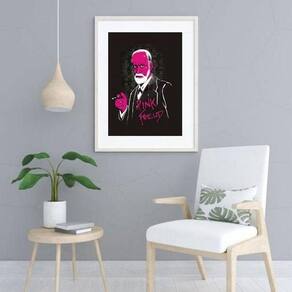 Quadro pink freud- 60x48cm Moldura: madeira preta Informações do produto tire todas as suas dúvidas no descritivo abaixo: decoração para quarto, sala, cozinha, escritório, área gourmet e muito mais. Chega de paredes vazias medidas - cada peça tem 60x48cm . Material do papel - papel fotográfico brilhante de altíssima resolução acabamento - todos os quadros são acompanhados de vidro para proteção da imagem. - moldura em madeira maciça na cor preta ou branca conforme produto escolhido e pendurador. - paspatur branco com 7cm de largura - os quadros são embalados de forma segura com plástico bolha com camada dupla de acordo com o tamanho dos quadros. Garantia - garantia de 3 meses. Meu quadro chegou. Como posso fixá-lo Você precisa apenas de um martelo e um prego, pois os quadros já vão acompanhados de penduradores. Esta é a forma mais indicada. Como posso limpar meu quadro A limpeza é feita como um móvel comum da sua casa. Apenas um pano seco ou espanador são suficientes para tal