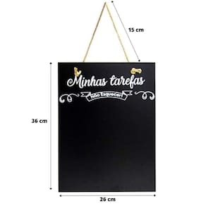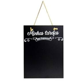 Quadro organizador de tarefas diversas. Anotações em giz ou caneta giz de fácil remoção. De fácil colocação apenas apoio na parede com auxílio de um prego. OBS: Não acompanha giz ou caneta giz.