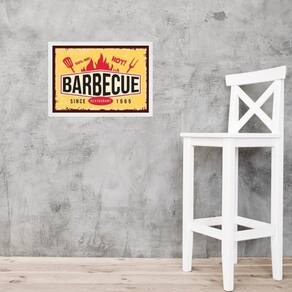 Quadro placa vintage churrasco - barbecue 24x18cm Cor: moldura preta Informações do produto tire todas as suas dúvidas no descritivo abaixo: decoração para quarto, sala, cozinha, escritório, área gourmet e muito mais. Chega de paredes vazias medidas - cada peça tem 24x18cm a5 . Material do papel - papel fotográfico brilhante de altíssima resolução acabamento - todos os quadros são acompanhados de uma película de acetato para proteção da imagem. - os quadros são embalados de forma segura com plástico bolha com camada dupla de acordo com o tamanho dos quadros. Garantia - garantia de 3 meses. Meu quadro chegou. Como posso fixá-lo Você precisa apenas de um martelo e um prego, pois os quadros já vão acompanhados de penduradores. Esta é a forma mais indicada. Caso prefira, você pode utilizar uma fita dupla face neste caso, sugerimos de alta qualidade para evitar que descole e seu quadro caia . Como posso limpar meu quadro A limpeza é feita como um móvel comum da sua casa. Apenas um pano seco ou espanador são suficientes para tal