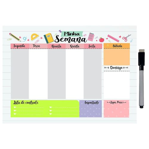 Quadro Planejador de Metal Semanal 20x26cm + Caneta