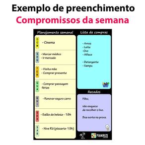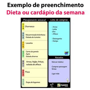 Dividido em espaço para planejamento semanal, lista de compras e recados