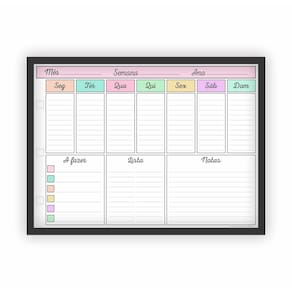O Quadro Planejamento Mensal Planner Com Moldura Mod03 é perfeito para organizar sua rotina de forma prática e eficiente. Com ele, você poderá fazer anotações, planejar seus estudos, gerenciar compromissos, estabelecer metas, controlar sua dieta e muito mais.