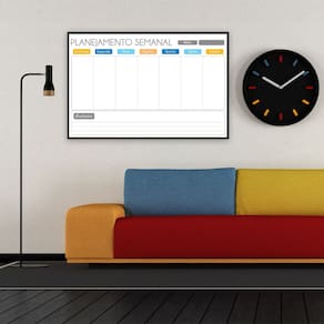 Organize sua semana usando o Quadro Planner Semanal Light. Com uma moldura de MDF revestida em preto elegante, este planner oferece um design moderno e funcional. Ideal para escritórios, salas de aula ou uso doméstico, ele permite que você visualize e planeje suas atividades semanais com clareza. A superfície é compatível com marcadores de quadro branco, facilitando a escrita e a limpeza. Transforme sua rotina com um toque de sofisticação e praticidade.