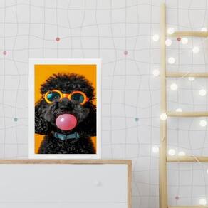 Quadro poodle bubble gum 45x34cm Moldura: madeira branca Informações do produto tire todas as suas dúvidas no descritivo abaixo: decoração para quarto, sala, cozinha, escritório, área gourmet e muito mais. Chega de paredes vazias. Medidas - cada peça tem 45x34cm a3 . Material do papel - papel fotográfico brilhante de altíssima resolução acabamento - todos os quadros são acompanhados de uma película de acetato para proteção da imagem. - os quadros são embalados de forma segura com plástico bolha com camada dupla de acordo com o tamanho dos quadros. Garantia - garantia de 3 meses. Meu quadro chegou. Como posso fixá-lo Você precisa apenas de um martelo e um prego, pois os quadros já vão acompanhados de penduradores. Esta é a forma mais indicada. Caso prefira, você pode utilizar uma fita dupla face neste caso, sugerimos de alta qualidade para evitar que descole e seu quadro caia . Como posso limpar meu quadro A limpeza é feita como um móvel comum da sua casa. Apenas um pano seco ou espanador são suficientes para tal