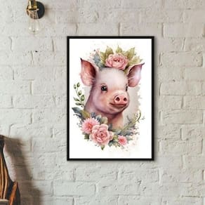 Quadro porquinho floral - aquarela 33x24cm Moldura: madeira preta Informações do produto tire todas as suas dúvidas no descritivo abaixo: decoração para quarto, sala, cozinha, escritório, área gourmet e muito mais. Chega de paredes vazias medidas - cada peça tem 33x24cm a4 . Material do papel - papel fotográfico brilhante de altíssima resolução acabamento - todos os quadros são acompanhados de uma película de acetato para proteção da imagem. - os quadros são embalados de forma segura com plástico bolha com camada dupla de acordo com o tamanho dos quadros. Garantia - garantia de 3 meses. Meu quadro chegou. Como posso fixá-lo Você precisa apenas de um martelo e um prego, pois os quadros já vão acompanhados de penduradores. Esta é a forma mais indicada. Caso prefira, você pode utilizar uma fita dupla face neste caso, sugerimos de alta qualidade para evitar que descole e seu quadro caia . Como posso limpar meu quadro A limpeza é feita como um móvel comum da sua casa. Apenas um pano seco ou espanador são suficientes para tal