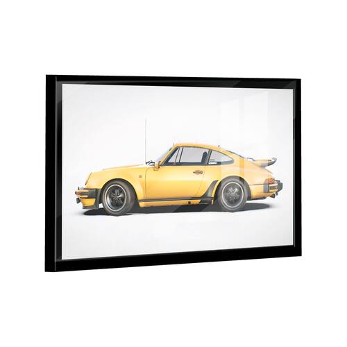 Quadro Porsche 911 Amarelo Lado -- BR ARTES Moldura Preta e Vidro - Pequeno 60x40 -