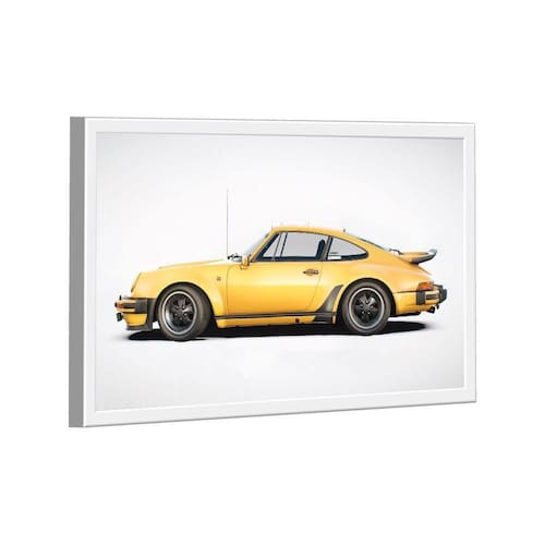 Quadro Porsche 911 Amarelo Lado -- BR ARTES Moldura Branca - Grande 118x78 -