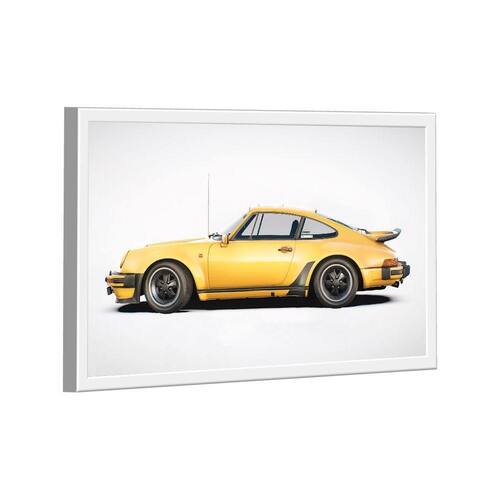 Quadro Porsche 911 Amarelo Lado -- BR ARTES Moldura Branca - Gigante 180x105 -