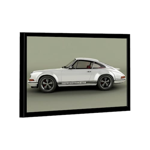 Quadro Porsche 911 Branco Metálico Lado -- BR ARTES Moldura Preta - Ultra Grande 150x100 -