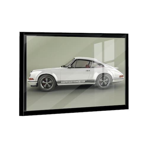 Quadro Porsche 911 Branco Metálico Lado -- BR ARTES Moldura Preta e Vidro - Pequeno 60x40 -