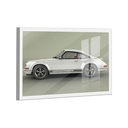 Quadro Porsche 911 Branco Metálico Lado -- BR ARTES Moldura Branca e Vidro - Ultra Grande 150x100 -