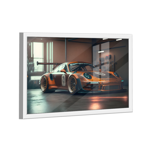 Quadro Porsche Gold -- BR ARTES Moldura Branca e Vidro - Grande 118x78 -