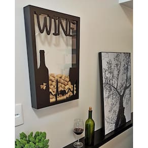 Quadro Porta Rolhas de Vinho - Wine 150 Rolhas Preencha esse lindo quadro com rolhas de vinho ou espumante e tenha uma decoração única na sua casa. Além de ser uma peça indispensável no local onde você desfruta daquele bom vinho este quadro pode ser um excelente presente para surpreender um amigo a , Namorado a e familiares que apreciam um bom vinho e que queiram guardar suas boas lembranças. Nosso produto é EXCLUSIVO pois a escrita em alto relevo sobre o vidro frontal é característica única dentre os outros quadros do mercado, o que destaca ainda mais a beleza deste item.