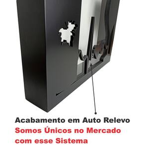 Escrita em auto relevo sob vidro. Pintura automotiva fosca. Acabamento perfeito realizado a laser. Capacidade para aproximadamente 150 rolhas. Abertura superior para inserção das rolhas. Fundo removível para retirada das rolhas. Na embalagem acompanha quadro + vidro frontal 2mm.