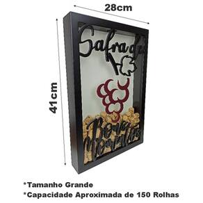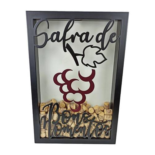 Quadro porta rolhas - safra de bons momentos - 150 rolhas 28 x 41 Você já pensou em eternizar aquele momento incrível que você viveu com seu familiares ou amigos bebendo aquele vinho sensacional... É exatamente isso que nosso quadro porta rolhas vai fazer por você. Deposite suas rolhas em nosso quadro e eternize seus momentos e lembranças mais especiais. Não perca tempo, compre agora Nosso quadro porta rolhas combina com vários tipos de decoração e torna qualquer ambiente sofisticado e com muito estilo. Devido a sua cor e acabamento, nosso porta rolhas é extremamente versátil e pode ser para decorar salas de estar, jantar, quartos e até mesmo cozinhas e home-offices. O design moderno e sofisticado do produto vai deixar seu ambiente único, agradável e aconchegante. Os quadros complementam a decoração com beleza e sofisticação trazendo harmonia e alegria ao ambiente. Produzidos com muito carinho, nossos quadros são exclusivos, você só encontra aqui. Tendo como grandes diferenciais o acabamento com pintura preta fosca laqueada, o que torna o produto muito moderno e luxuoso, e principalmente a frente com escrita em auto-relevo. Nosso acabamento em auto-relevo é inovador, não possuindo nada igual no mercado, tornando essa exclusividade outro grande diferencial do nosso produto. Nosso quadro porta rolhas é produzido com madeira de reflorestamento, mdf, vidro 2mm transparência muito superior ao acrílico e finalizado com uma pintura preta super resistente. Não perca tempo, adquira seu quadro porta rolhas agora e comece a colecionar momentos. Tamanho: 41cm altura x 28cm largura x 5,5cm profundidade Capacidade: 150 rolhas aproximadamente Indicações de uso: Pubs Homebar Varandas e sacadas gourmet Clubes e grupos de degustação de vinho Cozinhas Salas em geral Home theater Garagens Obs: rolhas não acompanham o produto Marca: Não Informado