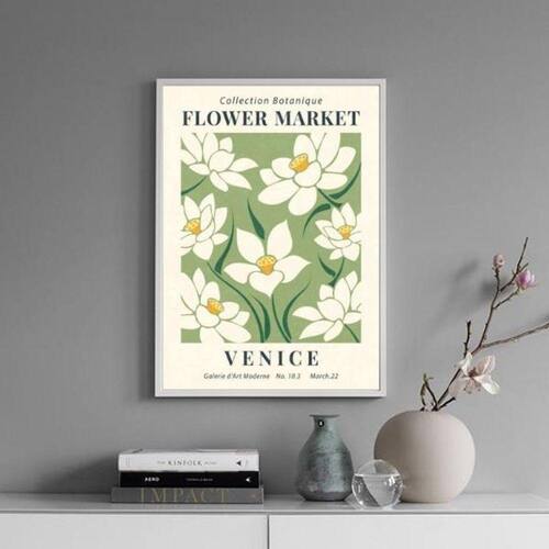 Quadro poster flower market - venice 33x24cm - com vidro Moldura: madeira branca Informações do produto tire todas as suas dúvidas no descritivo abaixo: decoração para quarto, sala, cozinha, escritório, área gourmet e muito mais. Chega de paredes vazias medidas - cada peça tem 33x24cm a4 . Material do papel - papel fotográfico brilhante de altíssima resolução acabamento - todos os quadros são acompanhados de vidro para proteção da imagem. - moldura em madeira maciça na cor preta ou branca conforme produto escolhido e pendurador . - os quadros são embalados de forma segura com plástico bolha com camada dupla de acordo com o tamanho dos quadros. Garantia - garantia de 3 meses. Meu quadro chegou. Como posso fixá-lo Você precisa apenas de um martelo e um prego, pois os quadros já vão acompanhados de penduradores. Esta é a forma mais indicada. Como posso limpar meu quadro A limpeza é feita como um móvel comum da sua casa. Apenas um pano seco ou espanador são suficientes para tal
