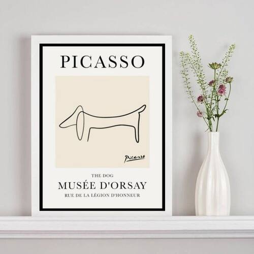 Quadro poster picasso - the dog 45x34cm - com vidro Moldura: madeira preta Informações do produto tire todas as suas dúvidas no descritivo abaixo: decoração para quarto, sala, cozinha, escritório, área gourmet e muito mais. Chega de paredes vazias medidas - cada peça tem 45x34cm a3 . Material do papel - papel fotográfico brilhante de altíssima resolução acabamento - todos os quadros são acompanhados de vidro para proteção da imagem. - moldura em madeira maciça na cor preta ou branca conforme produto escolhido e pendurador . - os quadros são embalados de forma segura com plástico bolha com camada dupla de acordo com o tamanho dos quadros. Garantia - garantia de 3 meses. Meu quadro chegou. Como posso fixá-lo Você precisa apenas de um martelo e um prego, pois os quadros já vão acompanhados de penduradores. Esta é a forma mais indicada. Como posso limpar meu quadro A limpeza é feita como um móvel comum da sua casa. Apenas um pano seco ou espanador são suficientes para tal