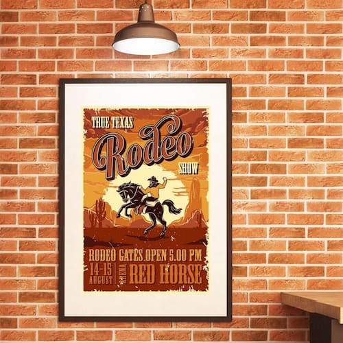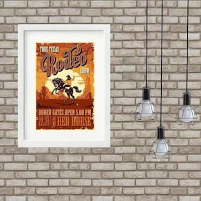 Quadro poster rodeio texas - 60x48cm Cor: moldura branca Informações do produto tire todas as suas dúvidas no descritivo abaixo: decoração para quarto, sala, cozinha, escritório, área gourmet e muito mais. Chega de paredes vazias medidas - cada peça tem 60x48cm . Material do papel - papel fotográfico brilhante de altíssima resolução acabamento - todos os quadros são acompanhados de vidro para proteção da imagem. - moldura em madeira maciça na cor preta ou branca conforme produto escolhido e pendurador. - paspatur branco com 7cm de largura - os quadros são embalados de forma segura com plástico bolha com camada dupla de acordo com o tamanho dos quadros. Garantia - garantia de 3 meses. Meu quadro chegou. Como posso fixá-lo Você precisa apenas de um martelo e um prego, pois os quadros já vão acompanhados de penduradores. Esta é a forma mais indicada. Como posso limpar meu quadro A limpeza é feita como um móvel comum da sua casa. Apenas um pano seco ou espanador são suficientes para tal