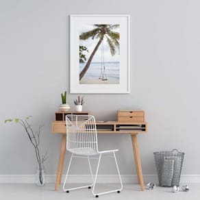 Quadro praia balanço coqueiro - 60x48cm Moldura: madeira preta Informações do produto tire todas as suas dúvidas no descritivo abaixo: decoração para quarto, sala, cozinha, escritório, área gourmet e muito mais. Chega de paredes vazias medidas - cada peça tem 60x48cm . Material do papel - papel fotográfico brilhante de altíssima resolução acabamento - todos os quadros são acompanhados de vidro para proteção da imagem. - moldura em madeira maciça na cor preta ou branca conforme produto escolhido e pendurador. - paspatur branco com 7cm de largura - os quadros são embalados de forma segura com plástico bolha com camada dupla de acordo com o tamanho dos quadros. Garantia - garantia de 3 meses. Meu quadro chegou. Como posso fixá-lo Você precisa apenas de um martelo e um prego, pois os quadros já vão acompanhados de penduradores. Esta é a forma mais indicada. Como posso limpar meu quadro A limpeza é feita como um móvel comum da sua casa. Apenas um pano seco ou espanador são suficientes para tal