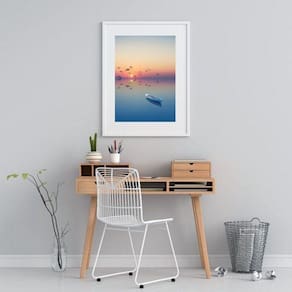 Quadro praia canoa por do sol - 60x48cm Moldura: madeira branca Informações do produto tire todas as suas dúvidas no descritivo abaixo: decoração para quarto, sala, cozinha, escritório, área gourmet e muito mais. Chega de paredes vazias medidas - cada peça tem 60x48cm . Material do papel - papel fotográfico brilhante de altíssima resolução acabamento - todos os quadros são acompanhados de vidro para proteção da imagem. - moldura em madeira maciça na cor preta ou branca conforme produto escolhido e pendurador. - paspatur branco com 7cm de largura - os quadros são embalados de forma segura com plástico bolha com camada dupla de acordo com o tamanho dos quadros. Garantia - garantia de 3 meses. Meu quadro chegou. Como posso fixá-lo Você precisa apenas de um martelo e um prego, pois os quadros já vão acompanhados de penduradores. Esta é a forma mais indicada. Como posso limpar meu quadro A limpeza é feita como um móvel comum da sua casa. Apenas um pano seco ou espanador são suficientes para tal