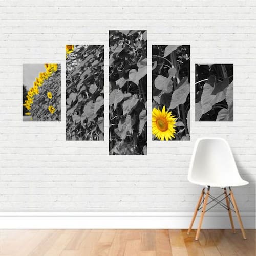 Quadro Preto e Branco Girassóis Plantação Flores Plantas Canvas